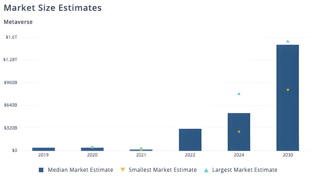 The metaverse opportunity is enormous. Pitchbook research predicts that the market will be valued in the hundreds of billions of dollars by 2022, and will cross the trillion dollar threshold by 2030.